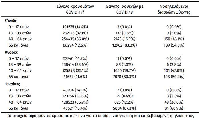 Οι νέοι θάνατοι ασθενών με COVID-19 είναι 36, ενώ από την έναρξη της επιδημίας έχουν καταγραφεί συνολικά 15.555 θάνατοι. Το 95.3% είχε υποκείμενο νόσημα ή/και ηλικία 70 ετών και άνω.