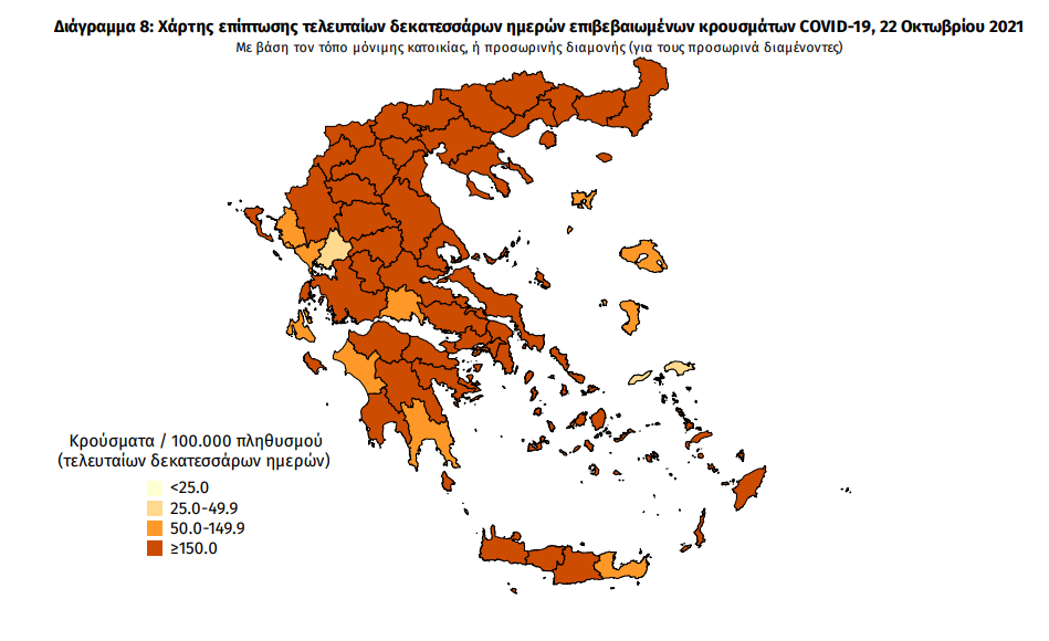 Με βάση τα επιβεβαιωμένα κρούσματα των τελευταίων 7 ημερών, 153 θεωρούνται σχετιζόμενα με ταξίδι από το εξωτερικό και 3.107 είναι σχετιζόμενα με ήδη γνωστό κρούσμα.