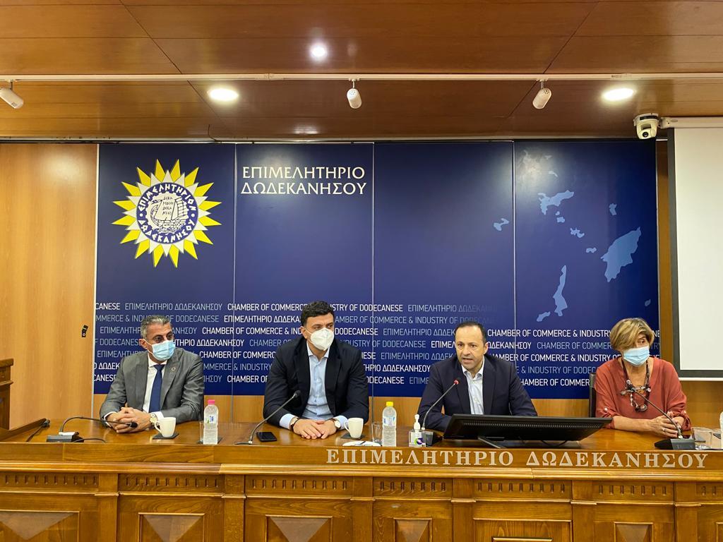 Ο Υπουργός Τουρισμού Βασίλης Κικίλιας πραγματοποίησε σήμερα διαδοχικές συσκέψεις εργασίας με το Επιμελητήριο Δωδεκανήσου, τον Εμπορικό Σύλλογο Ρόδου, την Ένωση Τουριστικών Γραφείων Δωδεκανήσου, το Σύλλογο Διευθυντών Ξενοδοχείων Δωδεκανήσου και του Πανδωδεκανησιακού Σωματείου Ιδιοκτητών Τουριστικών Λεωφορείων στα γραφεία του Επιμελητηρίου Δωδεκανήσου, καθώς και με την Ένωση Ξενοδόχων Ρόδου στα γραφεία της Ένωσης.
