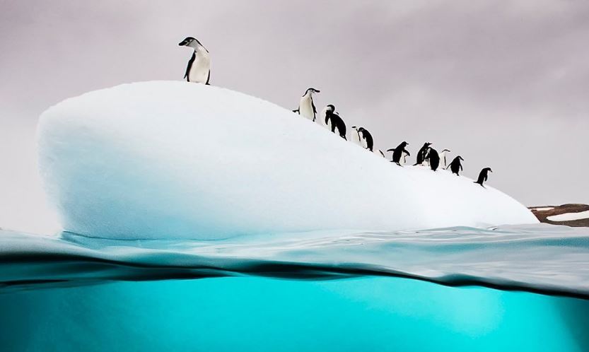 Από τον καλυμμένο με κοράλλια Kimbe Bay στην Παπούα Νέα Γουινέα μέχρι τους παγετώνες στην Danco Island της Ανταρκτικής, οι σαν διχοτομημένες φωτογραφίες του David Doubilet στο προς έκδοση λεύκωμα «Two Worlds: Above and Below the Sea» αποκαλύπτουν τα ποικίλα οικοσυστήματα και από τις δύο όψεις της επιφάνειας του νερού.