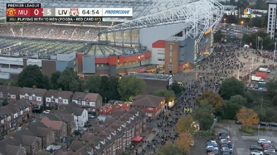 Σε μια εικόνα που σπάνια βλέπουμε σε αγγλικό γήπεδο και δη σε αυτό της Μάντσεστερ, το «Θέατρο των Ονείρων» άρχισε να… αδειάζει μαζικά.
