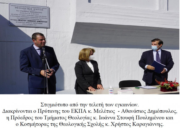 Η δημοσιογραφική κάλυψη της τελετής των εγκαινίων έδωσε τη δυνατότητα της διαπίστωσης του πλούσιου ανακαινιστικού έργου που εδώ κι ένα χρόνο, με την ανάληψη της Κοσμητείας από τον Αναπλ. Καθηγητή κ. Χρήστο Καραγιάννη, συντελείται στο κτηριακό συγκρότημα της Θεολογικής Σχολής Αθηνών.