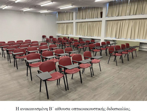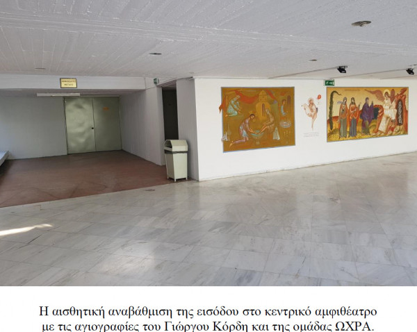 Με τη συνδρομή των Πρυτανικών Αρχών έχουν ανακαινισθεί αίθουσες διδασκαλίας αποκτώντας τελευταίας τεχνολογίας εξοπλισμό, έχουν τοποθετηθεί νέες πόρτες ασφαλείας και διαγράμματα που καθοδηγούν τον επισκέπτη, ενώ μόλις πριν από λίγες μέρες ξεκίνησε και η μόνωση – στεγανοποίηση της οροφής του κτηρίου. Η μεγάλη αλλαγή όμως γίνεται αισθητή στις εισόδους και στους διαδρόμους της Σχολής, οι οποίοι πλέον φιλοξενούν τις αγιογραφίες του διεθνώς αναγνωρισμένου αγιογράφου Γιώργου Κόρδη και της ομάδας ΩΧΡΑ, οι οποίες προσδίδουν στο κτήριο την ταυτότητα που τόσο έλειπε.