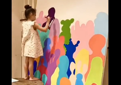 Το ασιατικής καταγωγής κοριτσάκι εμφανίζεται σε timelapse βίντεο στο Twitter να ζωγραφίζει σταδιακά έναν πίνακα τεράστιου μεγέθους.