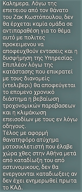 Οπως αποκαλύπτουν «ΤΑ ΝΕΑ», λοιπόν, προ μερικών εβδομάδων είχε σταλεί από αρμόδιους αξιωματικούς της ΕΛ.ΑΣ., μέσω Viber (οι συνομιλίες στην εν λόγω πλατφόρμα δεν μπορούν να καταγραφούν από τα συστήματα παρακολούθησης ΕΛ.ΑΣ. και ΕΥΠ), προς αστυνομικούς της ΔΙΑΣ το εξής SMS: «Καλημέρα. Λόγω της επετείου από τον θάνατο του Ζακ Κωστόπουλου, δεν θα έλθετε καμία ομάδα σε αντιπαράθεση για το θέμα αυτό με πολίτες προκειμένου να αποφευχθούν οι εντάσεις και δυσφήμηση της υπηρεσίας. Επιπλέον, λόγω της κατάστασης που επικρατεί με τους διανομείς (delivery), θα αποφεύγετε το επόμενο χρονικό διάστημα βεβαίωση τροχονομικών παραβάσεων και κλιμάκωση επεισοδίων με τους εν λόγω οδηγούς», για να ακολουθήσει, τέλος, η κρίσιμη – άτυπη – εντολή, που αποκτά ιδιαίτερο ειδικό βάρος μετά την αιματηρή καταδίωξη στο Πέραμα: «Τέλος, με αφορμή θανατηφόρο ατύχημα με μοτοσικλετιστή που έλαβε χώρα χθες στην Αθήνα ύστερα από καταδίωξή του από αστυνομικούς δεν θα ενεργούνται καταδιώξεις αν δεν έχει ενημερωθεί πρώτα το κέντρο της Αμεσης Δράσης». Μάλιστα, μετά το περιστατικό της Παρασκευής στο Πέραμα ακολούθησε – και πάλι μέσω Viber – ρητή εντολή προς ένστολους να μην πλησιάζουν σε καταυλισμούς Ρομά και να μην προχωρούν σε οποιαδήποτε κίνηση που θα μπορούσε να εκληφθεί ως «πρόκληση».