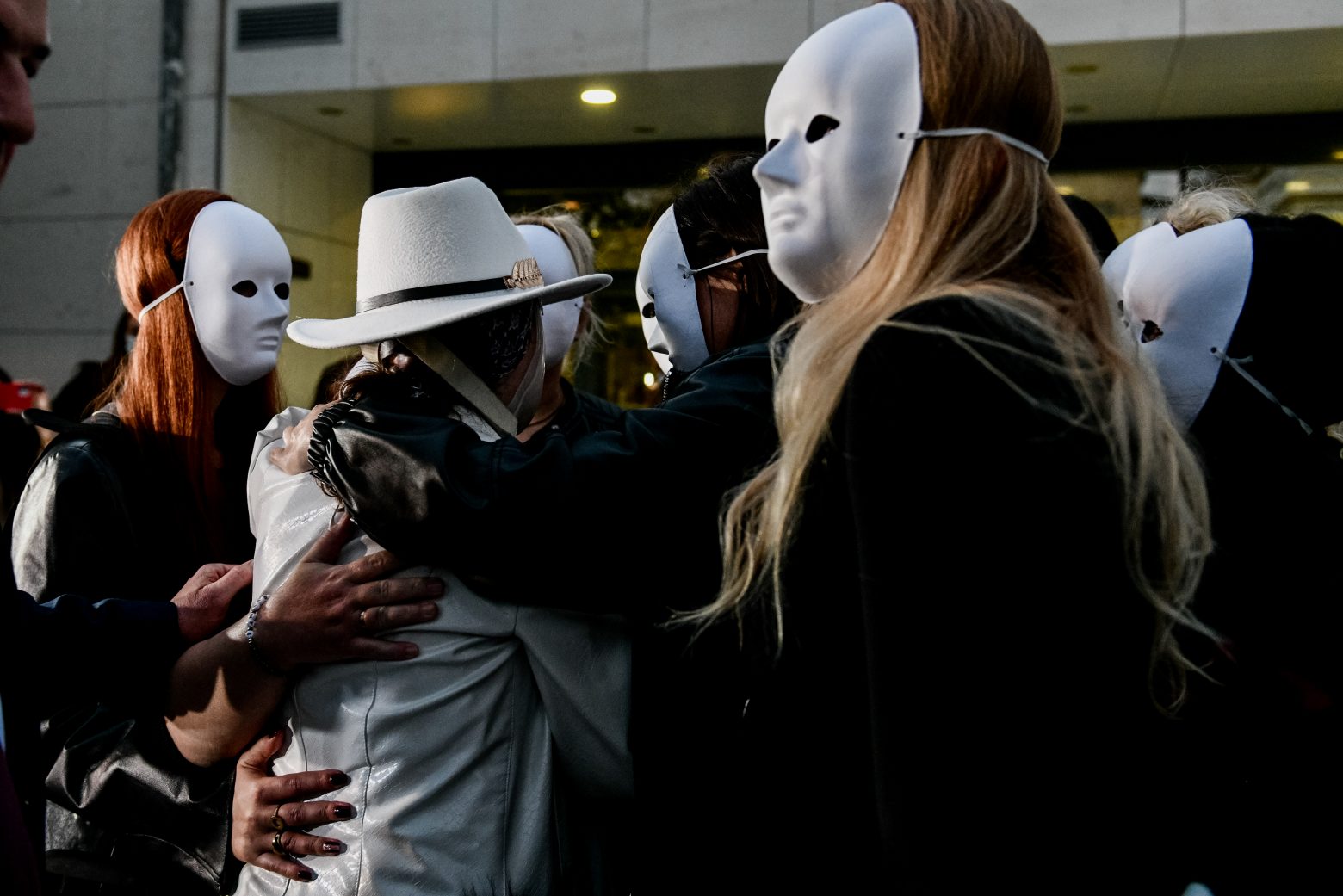 Αμέσως μετά τις δηλώσεις της, η Ιωάννα έπεσε στην αγκαλιά των γυναικών, οι οποίες φορούσαν όλες μάσκες, σε μια συμβολική κίνηση συμπαράστασης.