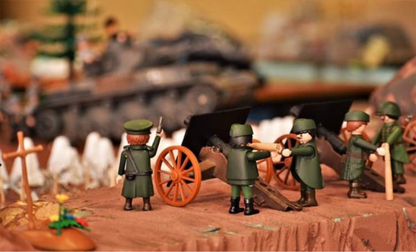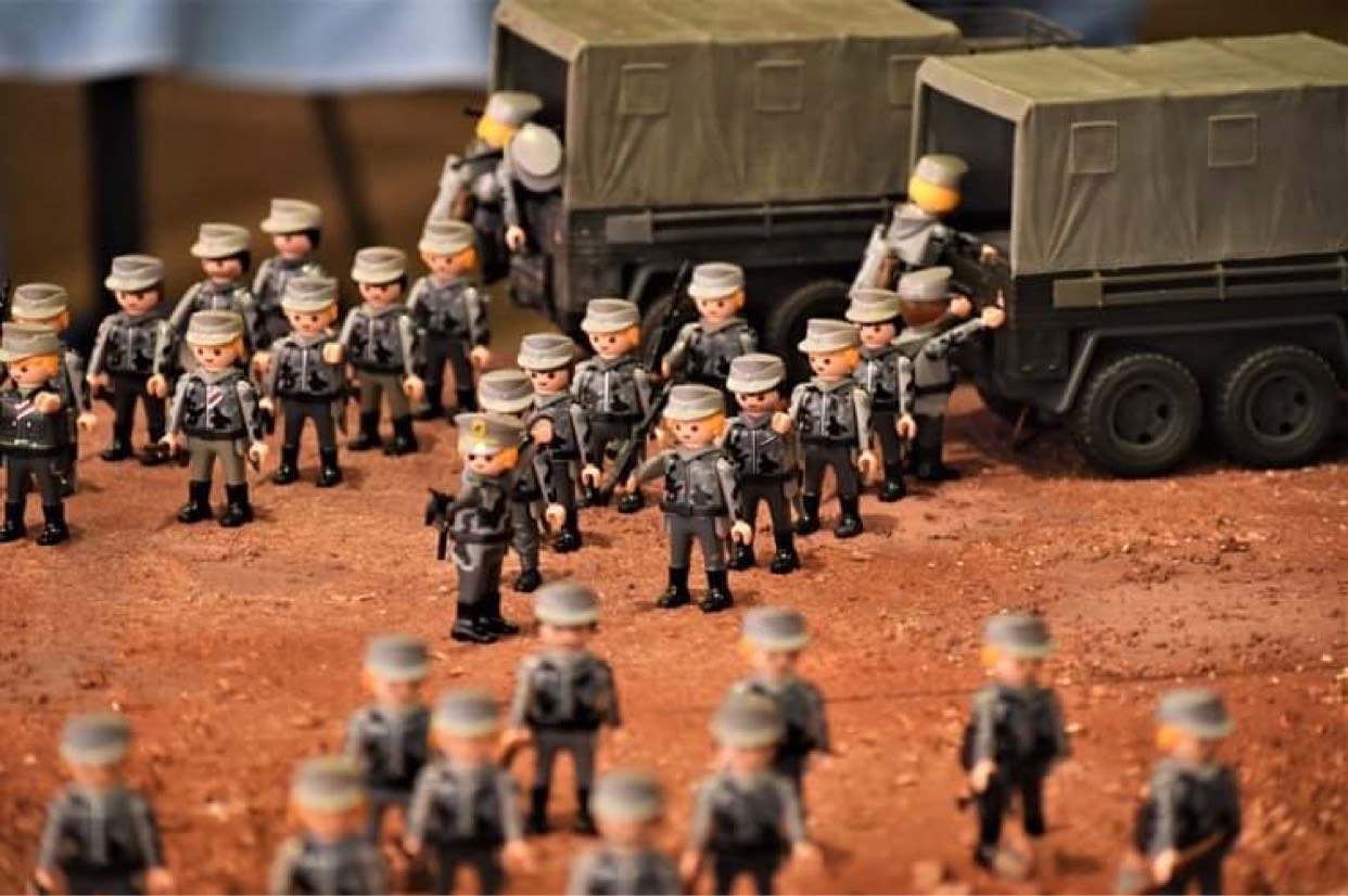 Το ρολόι έδειχνε λίγο μετά τις 5 το απόγευμα και έξω από το Πολεμικό Μουσείο Θεσσαλονίκης, ανάμεσα στους πολλούς επισκέπτες που συρρέουν αυτές τις ημέρες, με αφορμή την εθνική επέτειο, ξεχώριζαν κάποιοι λάτρεις όχι μόνο της Ιστορίας αλλά και των playmobil. Κι αν αυτό μπορεί ν’ ακούγεται παράξενο σε κάποιους, ο Τάσος Πανταζόπουλος δίνει την απάντηση με το playmobil διόραμά του για το Οχυρό Ρούπελ, που εκτίθεται από τις 22 Οκτωβρίου, στο Πολεμικό Μουσείο Θεσσαλονίκης.