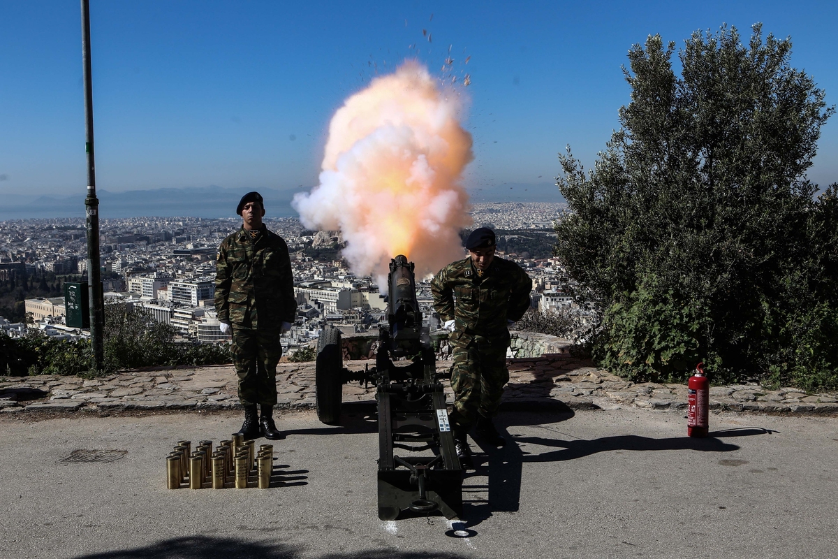 Οι εορταστικές εκδηλώσεις για την 28η Οκτωβρίου ξεκίνησαν με τους καθιερωμένους κανονιοβολισμούς από τον Λυκαβηττό.