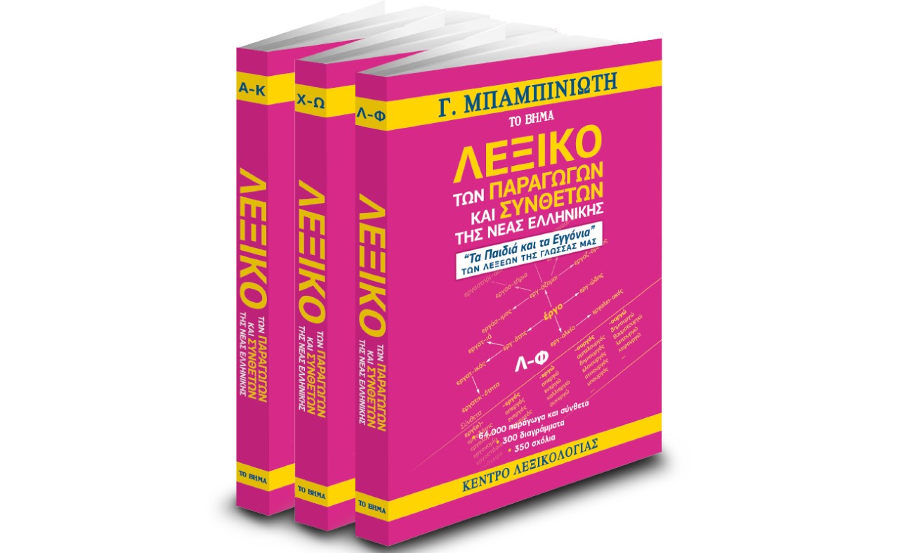 «Η γλώσσα δεν είναι ένα απλό εργαλείο· είναι ο πολιτισμός, η ιστορία, η ταυτότητά μας. Σε όλη μας τη ζωή, από την ώρα που γεννιόμαστε μέχρι την ώρα που φεύγουμε μαθαίνουμε. Και λέξεις και φράσεις. Πρόκειται για έναν αγώνα να κατακτήσουμε την έκφραση της λέξης, να κατακτήσουμε τις έννοιες. Γλώσσα είναι η νόησή μας και με τη νόησή μας πλησιάζουμε τον κόσμο» έχει επισημάνει πολλές φορές σε συνεντεύξεις του ο καθηγητής γλωσσολογίας κ. Γεώργιος Μπαμπινιώτης. Την «καταγωγή» αυτού του θαυμαστού κόσμου των λέξεων αναλύει το «Λεξικό παραγώγων και συνθέτων της Νέας Ελληνικής» – «Τα παιδιά και τα εγγόνια των λέξεων της γλώσσας μας», το 9ο «παιδί» του κ. Μπαμπινιώτη. Είναι ένα πρωτότυπο, έγκυρο, πολύτιμο καθημερινό βοήθημα για τον μαθητή και τον εκπαιδευτικό, καθώς και για όλους όσοι αγαπούν και μελετούν την ελληνική γλώσσα. Ενα λεξικό που διαβάζεται, που δίνει άμεση, πραγματικά εντυπωσιακή εικόνα τού θησαυρού των λέξεων της ελληνικής γλώσσας. Ενα λεξικό που μάς βοηθάει να καταλάβουμε πώς γεννιούνται «τα παιδιά και τα εγγόνια των λέξεων», δηλαδή πώς δημιουργούνται λέξεις από άλλες.