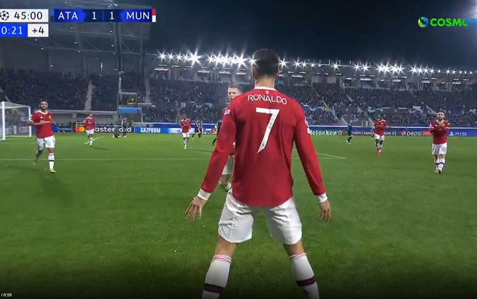 Στο πρώτο λεπτό των καθυστερήσεων συγκεκριμένα, μετά από υπέροχη συνεργασία ο Μπρούνο Φερνάντες έγινε αποδέκτης της μπάλας, πάτησε για τον Ρονάλντο που σούταρε για το 1-1 μέσα από την περιοχή.