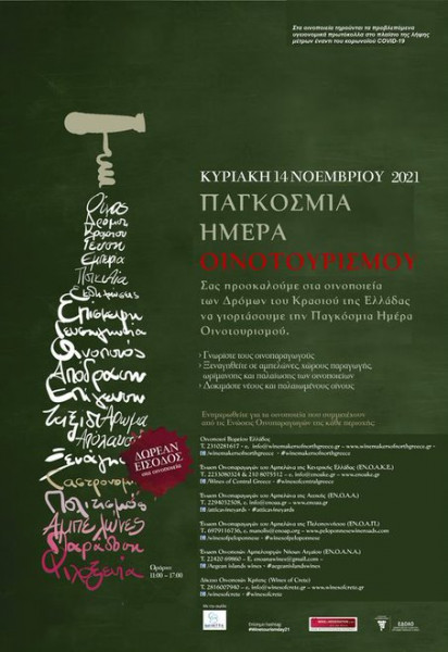 Την Κυριακή 14 Νοεμβρίου τα οινοποιεία των Δρόμων του Κρασιού της Ελλάδας, συμμετέχουν, στην Παγκόσμια Ημέρα Οινοτουρισμού και σας προσκαλούν να γιορτάσετε μαζί τους.