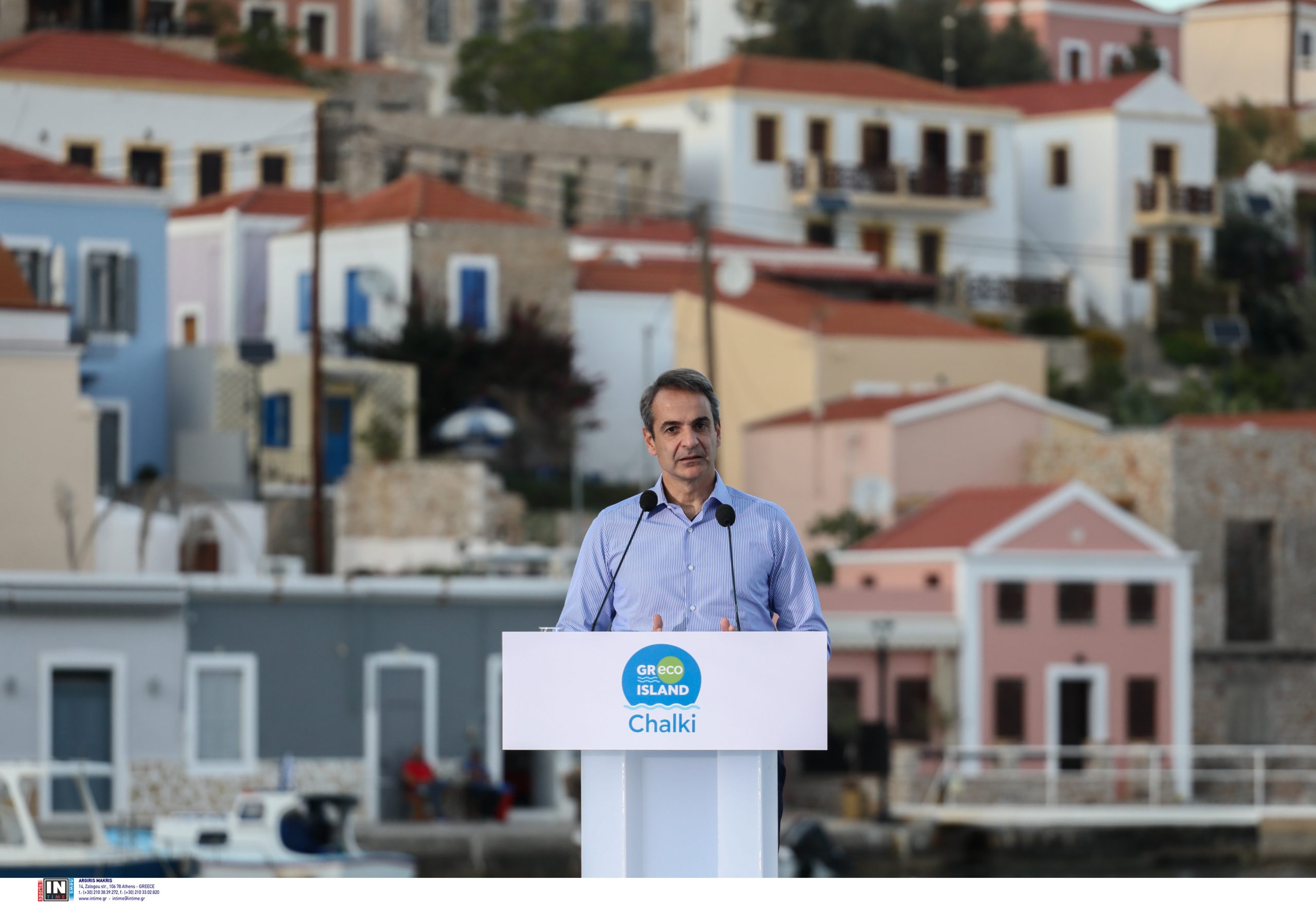 Greek Prime Minister Kyriakos Mitsotakis on Friday showcased his center-right government’s “green” transition and eco-friendly growth platform from a small Dodecanese Isle that lies just west of better-known Rhodes, as a large government delegation arrived on Halki for its designation as the country’s first “GR-eco” island.