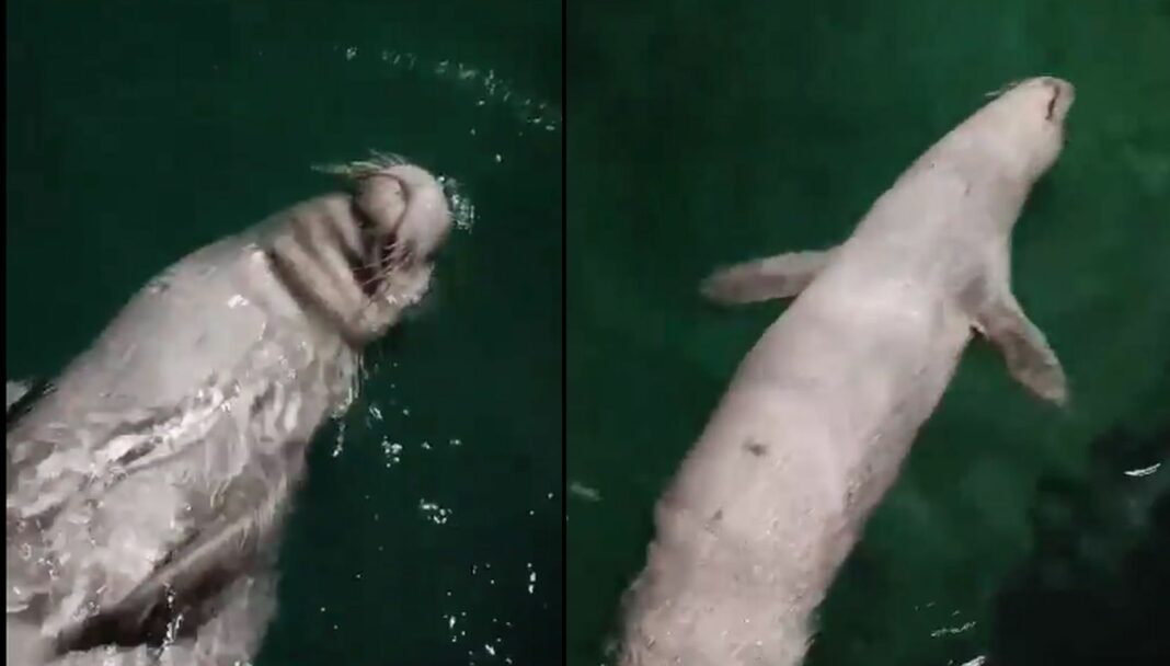 Ένα βίντεο από την Τήνο προκαλεί χαμόγελα καθώς δείχνει μια φώκια να κόβει βόλτες με την ησυχία της στα ρηχά. Τρώει ζαργάνες ενώ περνάει μπροστά από την κάμερα ποζάροντας με χάρη.