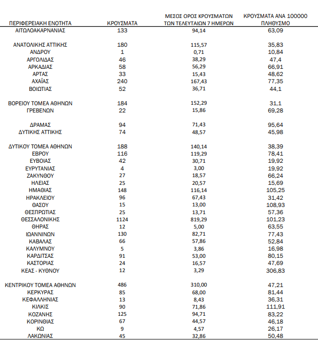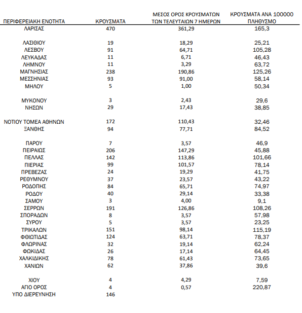 Δείτε την κατανομή των κρουσμάτων πανελλαδικά