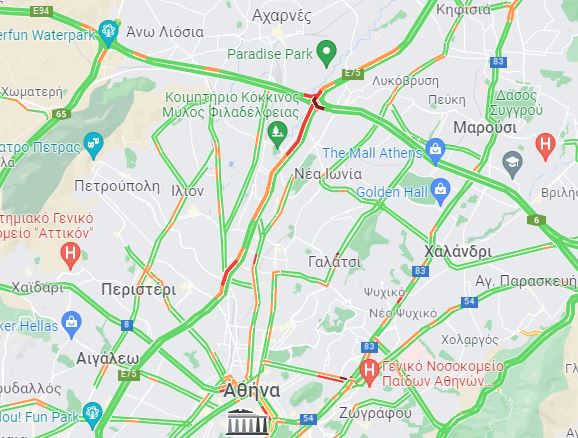 Το μεγαλύτερο πρόβλημα εντοπίζεται στην έξοδο της Αθηνών-Λαμίας από την Αθηνών έως τον κόμβο Καλυφτάκη, αλλά και στο λιμάνι του Πειραιά και στην Λεωφόρο Ποσειδώνος.