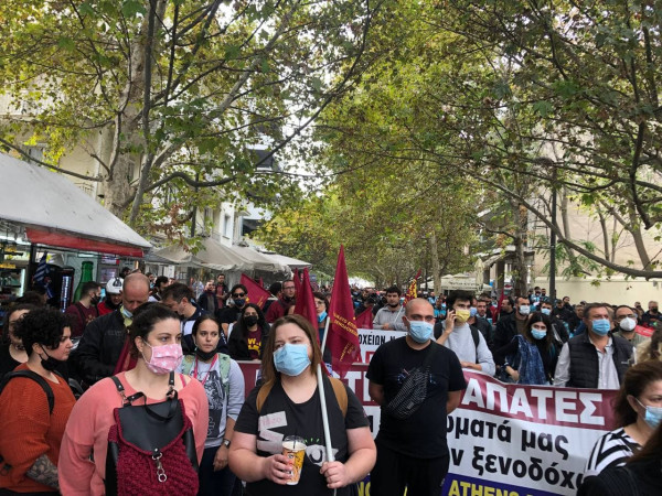 Σε απεργία και συγκέντρωση στο κέντρο της Αθήνας προχωρούν σήμερα οι εργαζόμενοι σε Τουρισμό και Επισιτισμό, διεκδικώντας μεταξύ άλλων συλλογικές συμβάσεις, επιδόματα ανεργίας για τους εποχικούς εργαζόμενους, μέτρα προστασίας στους χώρους δουλειάς. Οι εργαζόμενοι συγκεντρώθηκαν στις 12 το μεσημέρι στη Διονύσου Αρεοπαγίτου και ξεκίνησαν πορεία προς τη Βουλή.