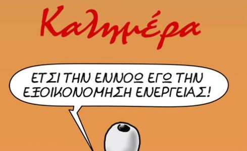 Όπως μπορείτε να δείτε και στην εικόνα που ακολουθεί, ο Ζαχαρίας, ξαπλωμένος ανάσκελα αναφέρει στο συννεφάκι «Έτσι την εννοώ εγώ την εξοικονόμηση ενέργειας».