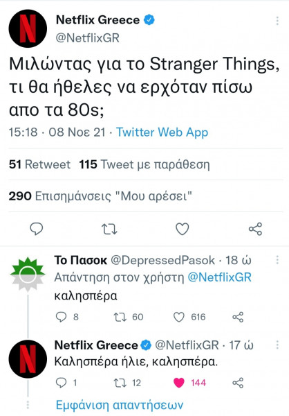 Ανάμεσα στις απαντήσεις ξεχώρισε και ο γνωστός λογαριασμός με όνομα Το ΠΑΣΟΚ ο οποίος πήγε να τρολάρει το Netflix αλλά πήρε την πιο επική απάντηση.