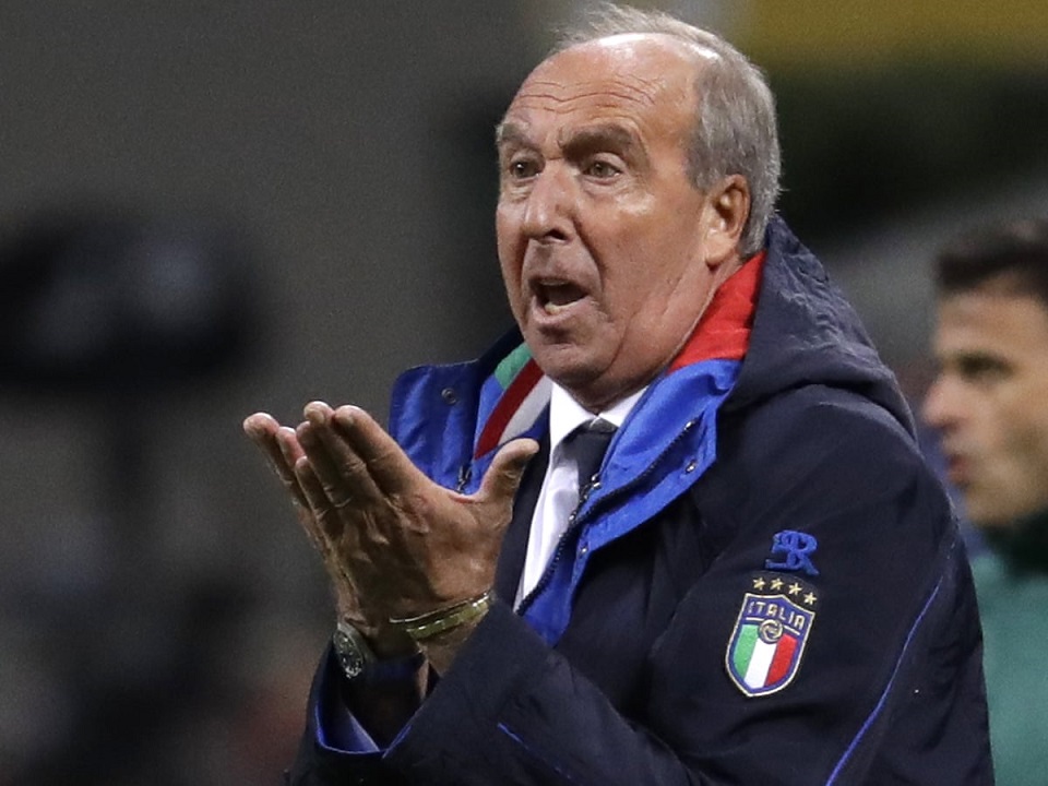 Μελανό σημείο στην καριέρα του ο αποκλεισμός από το Παγκόσμιο Κύπελλο του 2018 από τη Σουηδία, όταν κάθισε στο πάγκο της εθνικής Ιταλίας από τις 19 Ιουλίου 2016 μέχρι τις 15 Νοεμβρίου 2017.