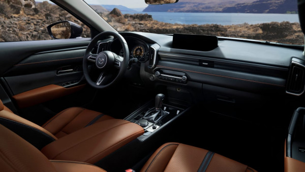 Εκ των έσω, το νέο SUV δείχνει να υπακούει στη γνωστή λιτή προσέγγιση των Mazda με τον ψηφιακό πίνακα οργάνων να αντλεί την έμπνευσή του από τον κόσμο των δύο τροχών και των αεροσκαφών, και την κεντρική οθόνη του infotainment να είναι διαχειρίσιμη, ως συνήθως, μέσω του περιστροφικού επιλογέα στην κεντρική κονσόλα. Να σημειωθεί ωστόσο ότι στα εξοπλιστικά χαρακτηριστικά του συμπεριλαμβάνεται και πανοραμική ηλιοροφή.