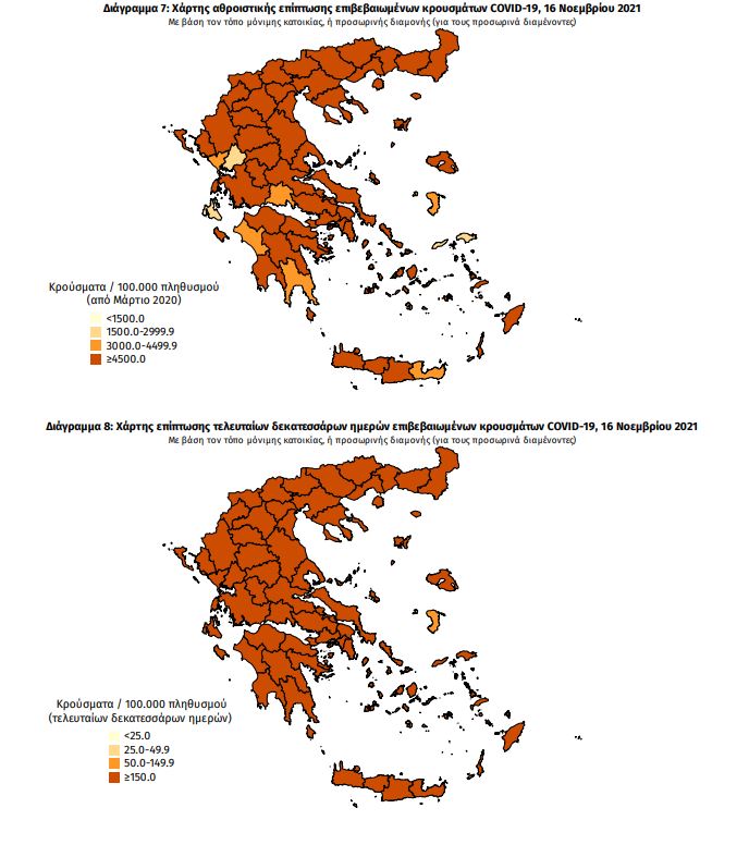 Οι νέοι θάνατοι ασθενών με COVID-19 είναι 80, ενώ από την έναρξη της επιδημίας έχουν καταγραφεί συνολικά 16.923 θάνατοι. Το 95.3% είχε υποκείμενο νόσημα ή/και ηλικία 70 ετών και άνω.