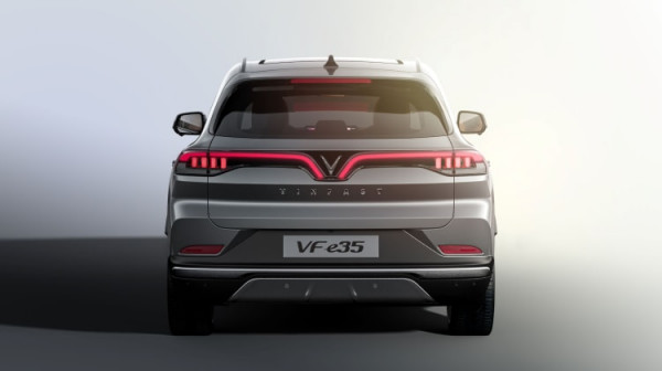 Στο πίσω τμήμα κυριαρχεί η ίδια αισθητική με νοητές παραλλήλους και ευθείες να δημιουργούν μια έντονη εικόνα συνεπικουρούμενης και της γραμμής LED που σχηματίζει ένα “V” στο κέντρο της, παραπέμποντας στο αρχικό της φίρμας από το Βιετνάμ.