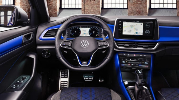Σημαντικότερες και δραστικότερες είναι οι αλλαγές στο εσωτερικό όπου το T-Roc διαθέτει ένα νέου σχεδιασμού ταμπλό, νέο τιμόνι και κεντρική κονσόλα όπου ξεχωρίζουν επίσης τα νέα χειριστήρια αφής για τον κλιματισμό. Πίσω από το τιμόνι φιλοξενείται ο αποκλειστικά ψηφιακός πλέον πίνακας οργάνων.
