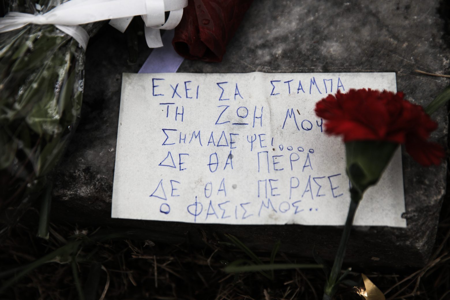 11:12 Συνεχίζεται απρόσκοπτα η προσέλευση του κόσμου στο Πολυτεχνείο στην Αθήνα. «Έχει σαν στάμπα τη ζωή μου σημαδέψει, δεν θα περά, δεν θα περάσει ο φασισμός», γράφει ένα από τα σημειώματα.