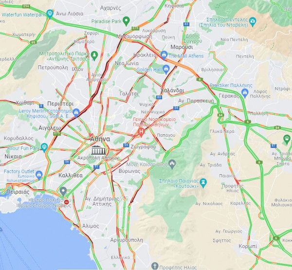Κυκλοφοριακό κομφούζιο επικρατεί στους δρόμους της Αθήνας, με την κίνηση , να είναι ιδιαίτερα αυξημένη.