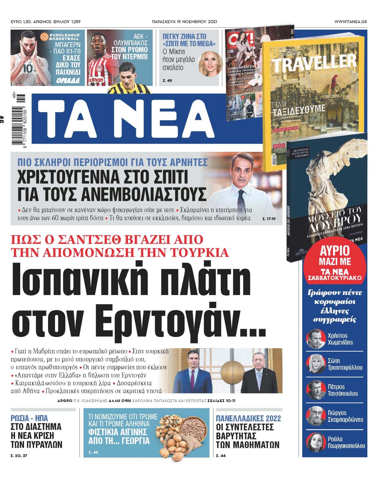 Στα «ΝΕΑ» της Παρασκευής – Ισπανική πλάτη στον Ερντογάν…