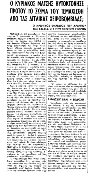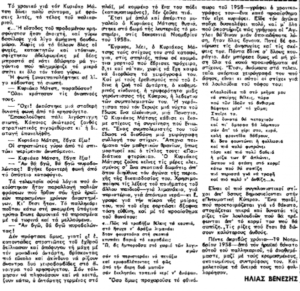 Ιδού πώς περιγράφει τον ηρωικό θάνατο του Κυριάκου Μάτση ο Ηλίας Βενέζης (πηγή: «Το Βήμα», Τρίτη 19 Νοεμβρίου 1963):