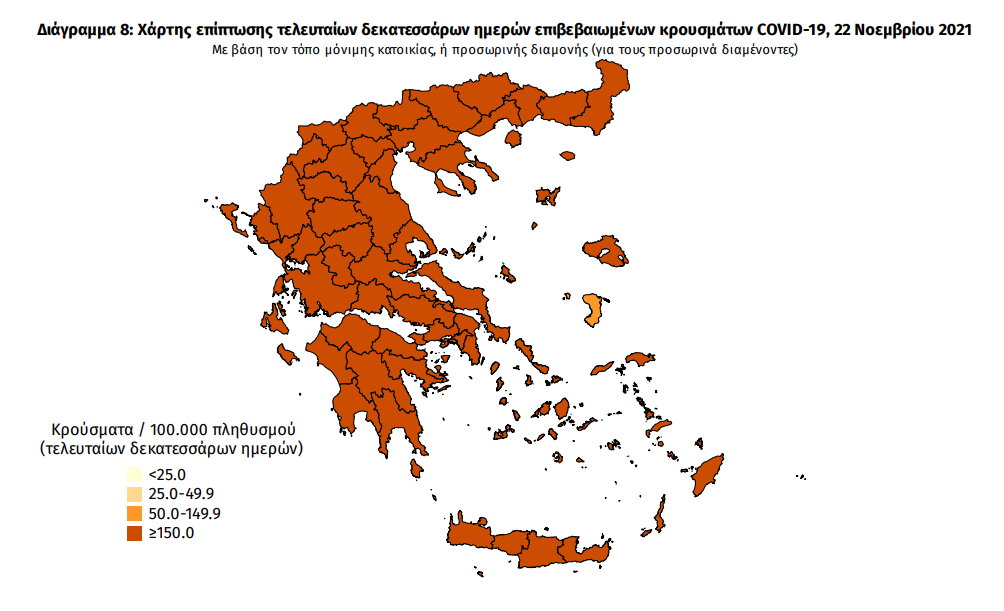 Κοροναϊός: Η επιδημιολογική κατάσταση της Ελλάδας την Δευτέρα 22 Νοεμβρίου