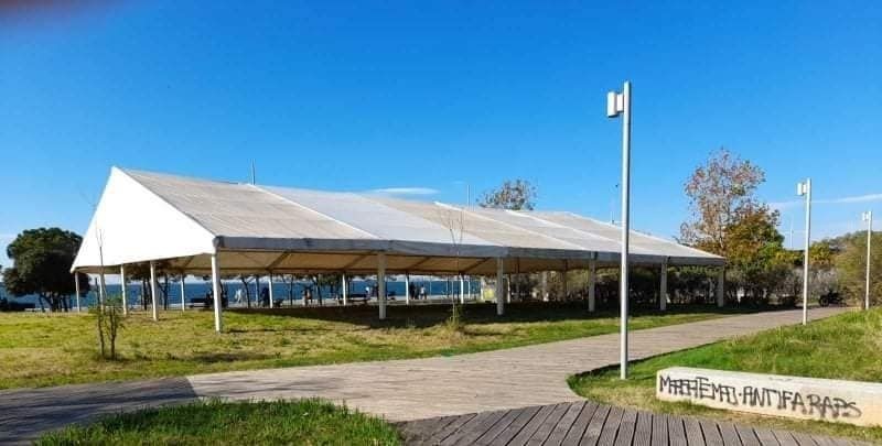 Μεγάλες διαστάσεις λαμβάνει η κατασκευή μια τεράστιας τέντας στον Κήπο των Εποχών στην Νέα Παραλία της Θεσσαλονίκης. Ο Δήμαρχος Κωνσταντίνος Ζέρβας απέστειλε επιστολή στον διευθύνοντα Σύμβουλο της ΕΤΑΔ και δηλώνει πως θα πράξει ότι μπορεί στα πλαίσια της νομιμότητας ώστε να απομακρυνθεί αυτή η κατασκευή από τον χώρο