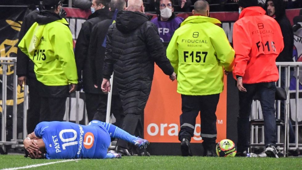 Dimitri Payet being struck with an object thrown from the crowd… another embarrassing and disgusting incident in ligue 1 this season #LyonOM pic.twitter.com/g0iSSSe79Y