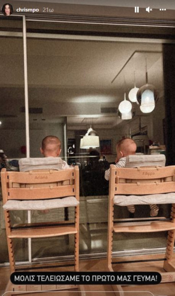 Οι μικρές έχουν μεγαλώσει και σιγά σιγά τρέφονται και με στέρεες τροφές και η Χριστίνα Μπόμπα το απολαμβάνει.