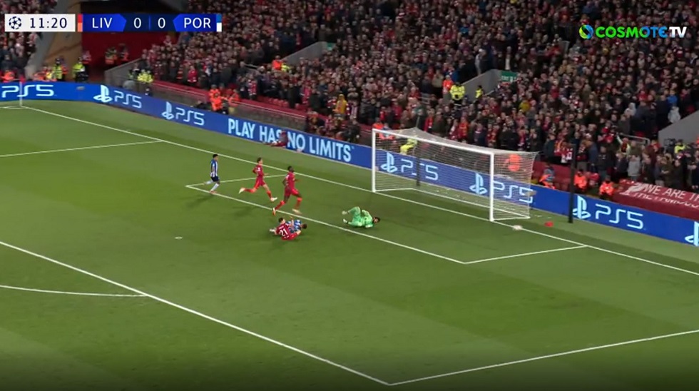 Από βέβαιο γκολ γλίτωσε την Λίβερπουλ ο Κώστας Τσιμίκας στο 12ο λεπτό της αναμέτρησης με την Πόρτο.