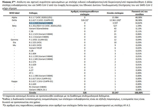 Το Δέλτα ήταν το μόνο στέλεχος ειδικού ενδιαφέροντος που ανιχνεύθηκε.
