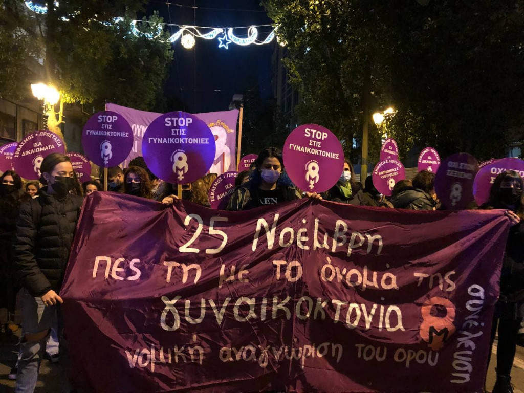 Στη συγκέντρωση, γυναίκες με βαμμένα τα πρόσωπά τους τίμησαν αυτές που έπεσαν θύματα γυναικοκτονίας. Από το μεγάφωνο της συγκέντρωσης ακουγόταν τα ονόματα των δολοφονημένων γυναικών και το σύνθημα «Δεν είναι η αγάπη, δεν είναι ο θυμός, το χέρι τους οπλίζει ο μισογυνισμός».