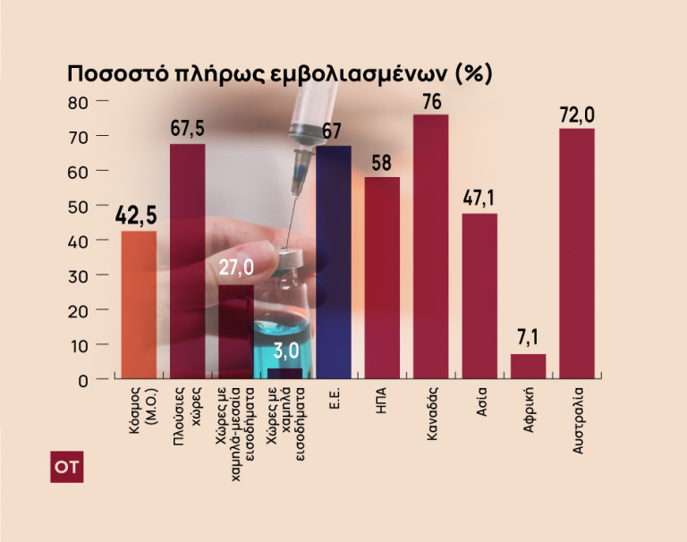 Τρομακτικά μικρά τα ποσοστά των πλήρως εμβολιασμένων στις φτωχές χώρες, επιτρέπουν την ανεξέλεγκτη διάδοση του ιού και τη δημιουργία νέων στελεχών. Τεράστιες οι ευθύνες του πλούσιου και ανεπτυγμένου κόσμου.