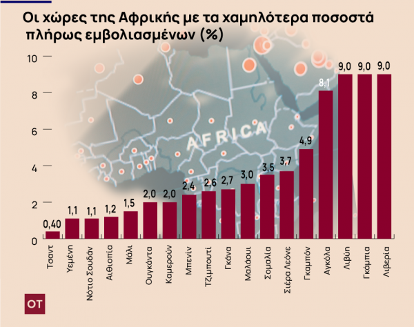Είναι ενδεικτικό ότι, σύμφωνα με τον ΠΟΥ, μόλις 5 από τις 54 χώρες της Αφρικής αναμένεται να έχουν πιάσει τον στόχο του 40% των πλήρως εμβολιασμένων ως το τέλος του έτους.