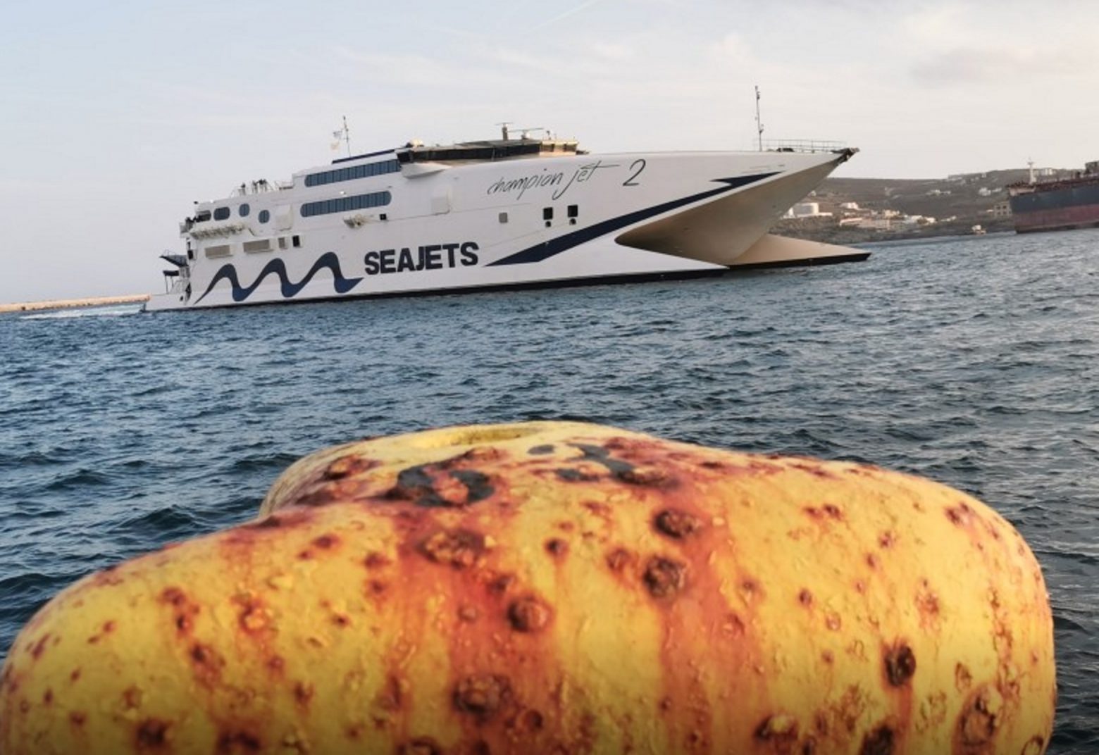 Το ταχύπλοο «Champion Jet 2» ολοκληρώνει για φέτος τη παρουσία του στις Κυκλάδες αποχαιρετώντας με τον δικό του ξεχωριστό τρόπο το λιμάνι της Ερμούπολης!