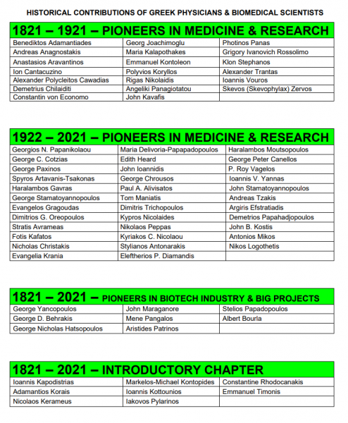 Πρωτοβουλία 1821-2021: Έλληνες πρωτοπόροι στην Ιατρική και τις Βιοϊατρικές Επιστήμες