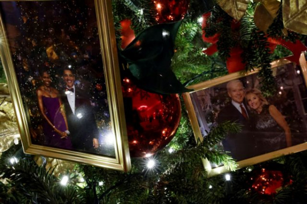 Οι Μπάιντεν έβαλαν ένα κάδρο με μια φωτογραφία του ζεύγους Τραμπ ανάμεσα στις φωτογραφίες άλλων προεδρικών οικογενειών που στολίζουν ένα από τα χριστουγεννιάτικα δέντρα τους. Από τη διακόσμηση αυτή δεν έλειψαν και ευχετήριες κάρτες που είχε υπογράψει ο Ντόναλντ Τραμπ.