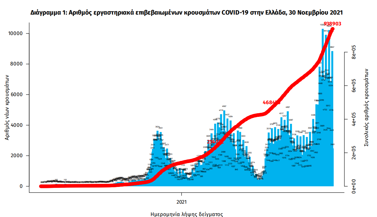 Κοροναϊός: Η επιδημιολογική κατάσταση της Ελλάδας την Τρίτη 30 Νοεμβρίου
