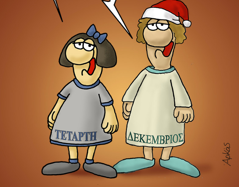 Ο Αρκάς μας καλημερίζει και μας εύχεται καλό μήνα με ένα σκίτσο που… κλείνει το μάτι στα Χριστούγεννα. Άλλωστε, είμαστε μόλις 24 μέρες πριν.