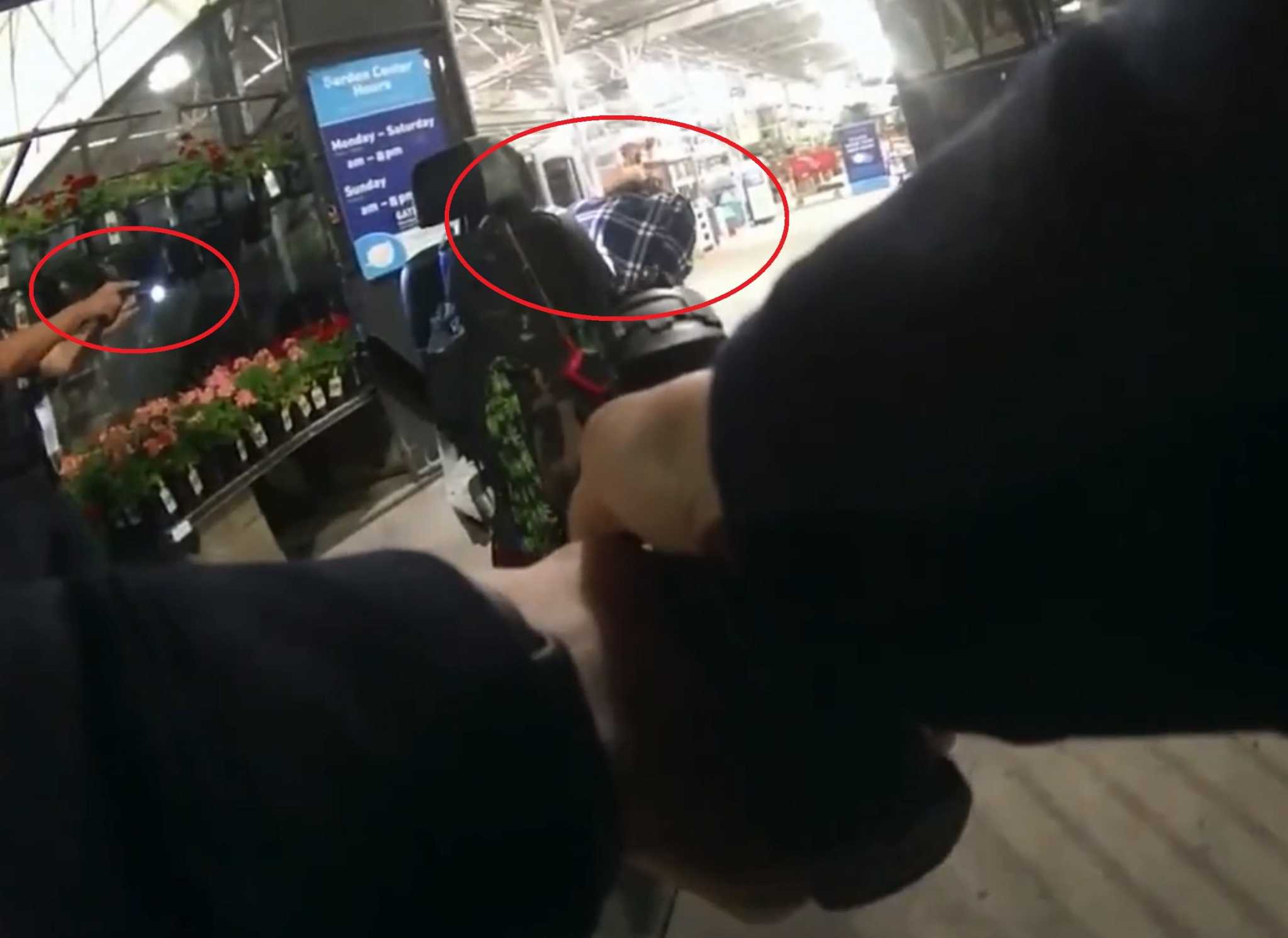Ο Ρέμινγκτον ζήτησε πολλές φορές από τον Ρίτσαρντς να σταματήσει και να πετάξει το μαχαίρι, όμως ο άνδρας τον αγνόησε, βγήκε από το σουπερμάρκετ και, διασχίζοντας το πάρκινγκ, κατευθύνθηκε σε ένα κατάστημα σιδηρικών, στην απέναντι πλευρά.