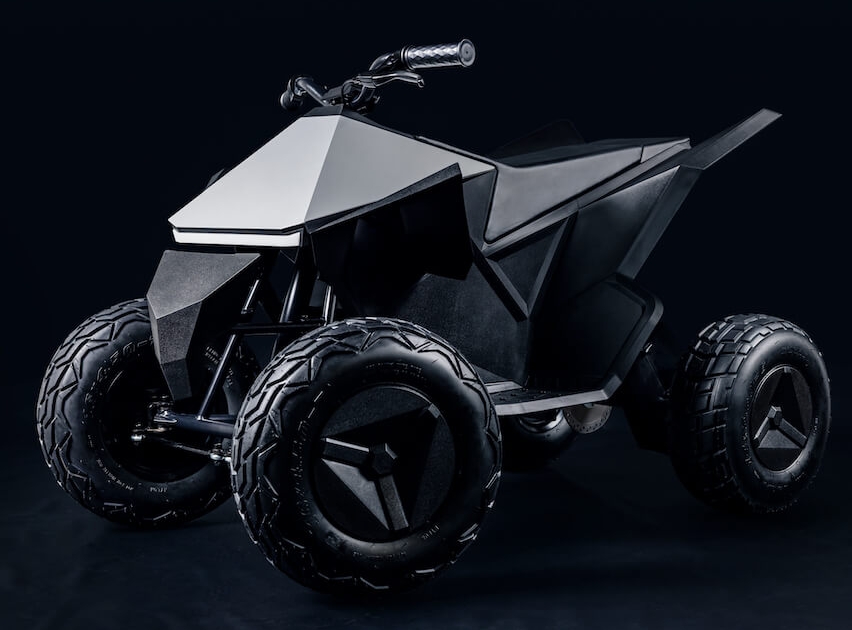 Το «Cyberquad for Kids» ακολουθεί τον φουτουριστικό σχεδιασμό του ημιφορτητού Cybertruck και διαθέτει ατσάλινο σασί, ρυθμιζόμενη ανάρτηση, πίσω δισκόφρενα και φώτα LED.