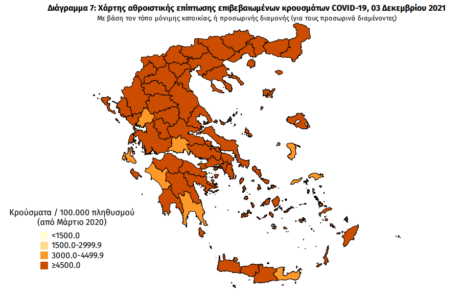 Με βάση τα επιβεβαιωμένα κρούσματα των τελευταίων 7 ημερών, 98 θεωρούνται σχετιζόμενα με ταξίδι από το εξωτερικό και 3.106 είναι σχετιζόμενα με ήδη γνωστό κρούσμα.