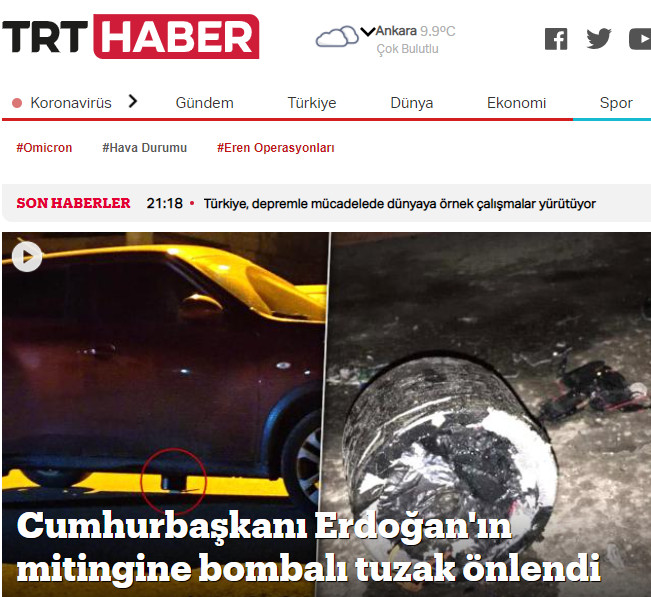 Σύμφωνα με πληροφορίες από το TRT Haber, ένας εκρηκτικός μηχανισμός είχε τοποθετηθεί κρυφά κάτω από το αυτοκίνητο του αστυνομικού που επρόκειτο να βρεθεί στη συγκέντρωση.