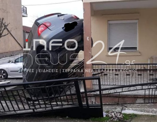 Σέρρες – Αυτοκίνητο «κρεμάστηκε» πάνω σε φράχτη σπιτιού